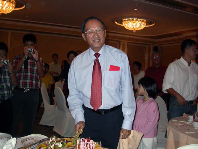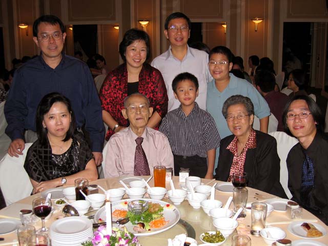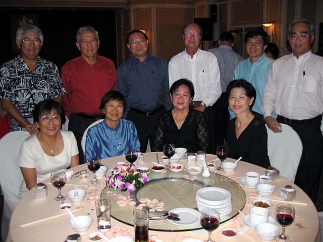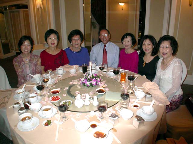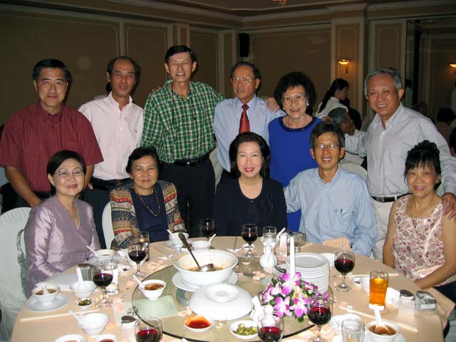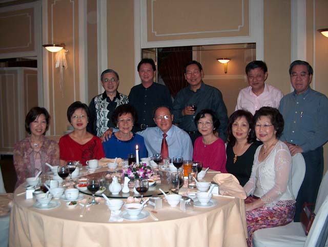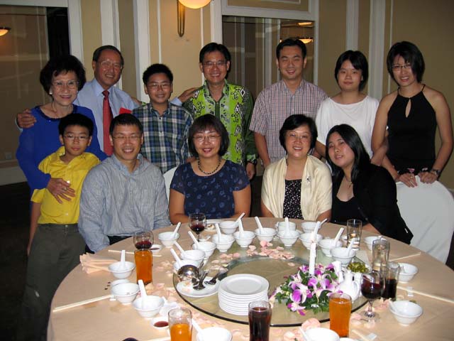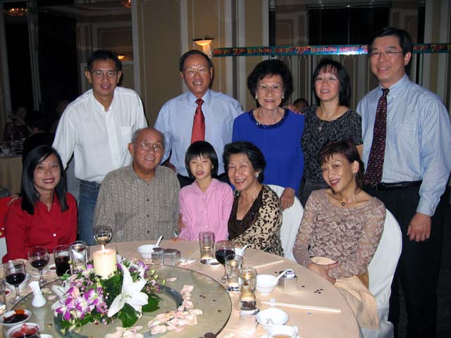 Kow Chek celebrated his 70th Birthday in grand style at the Goodwood Park Hotel on 26 Nov 03. His actual birthday is on 7 Dec 03, but he had it a bit earlier as Donna Mae and family were visiting from San Diego. Goh Pek, Rupert, and family also came down for the celebration.