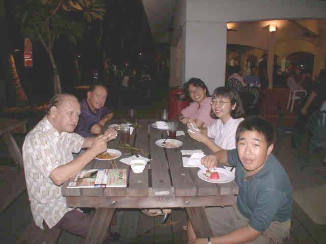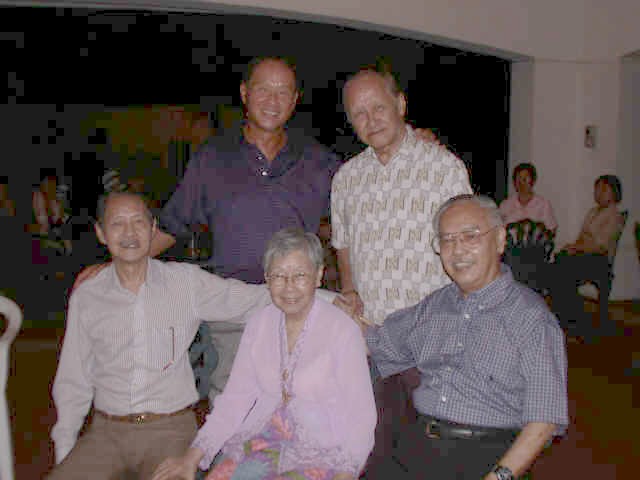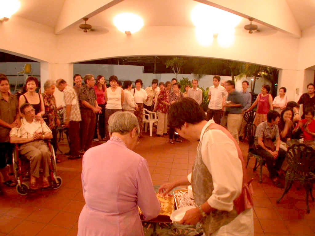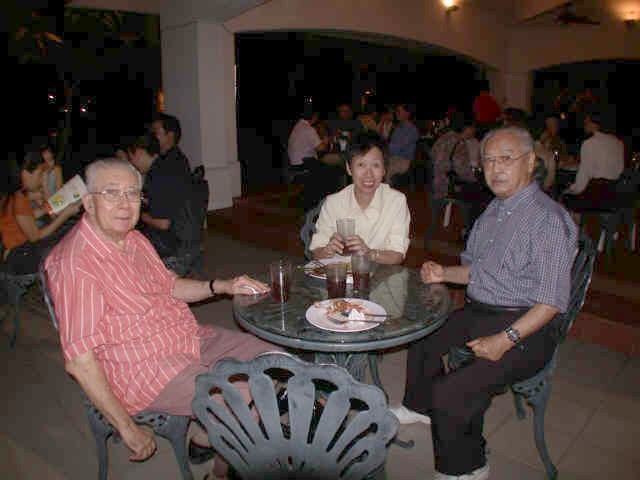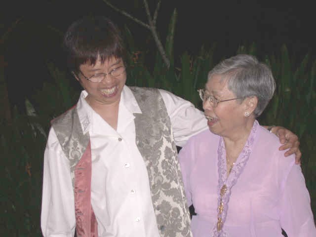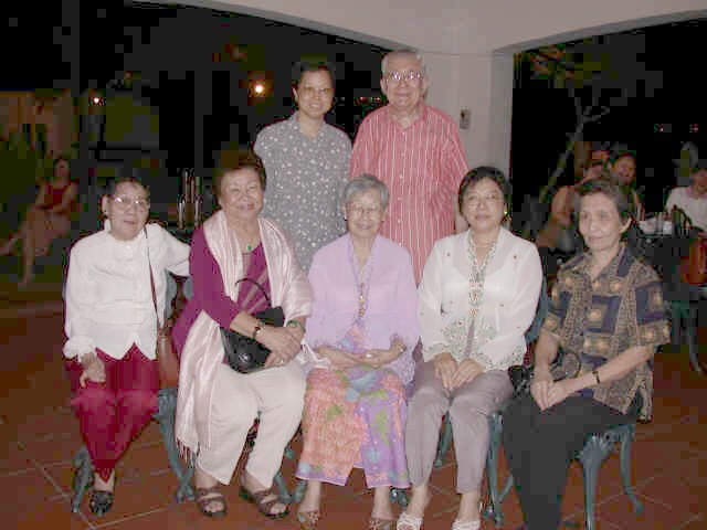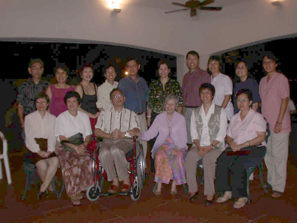 Links in this page : | Sah Kor and Cheng had a combined birthday party at the poolside in Keppel Club on Labour Day (1 May 02) - many thanks to Lani, Ed, Doris, Ping and Julian for throwing the party ! Sah Kor was celebrating her 83rd birthday, and Cheng was celebrating her big 50 (which was actually about 1.5 weeks ago) !! Many people were there including friends and relatives, and quite a few from Malaysia as well - namely Sylvia and Goh Pek, Goh Em, and Rupert. The birthday cake, which was especially yummy, was from Chun Nee (Rupert's wife) and Rupert had lovingly caressed the cake all the way down from KL in the bus. Lots of good food was served, and everyone had a good time. We had a photo session after that to commemorate the fact that we were all together once again. Must say it was done in a most orderly fashion : Started with Sah Kor and siblings, then with relatives in Sah Kor's generation, then one below that, then the next, then came Sah Kor's friends, then Cheng's friends, with Goh Pek's family (with Hock Boon's family - that's Goh Em's youngest brother). If you need help with who's who, let me know and I can try. If anyone wants the original digital images, let me know and I'll send them to you. The pictures you see here are reduced in size so that they fit the web, and the originals should have slightly better quality. Also, if anyone wants printed copies, let me know too and I'll be glad to oblige ! Hope you had fun seeing the pix !! P.S. Don't forget to check out the previous year's parties - click on the links on the left !