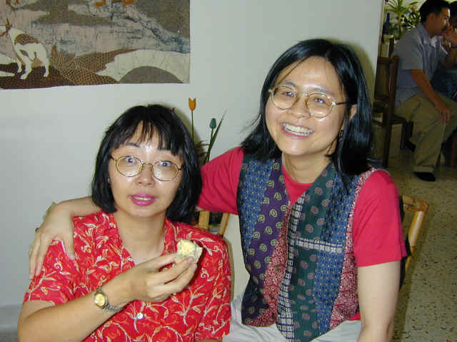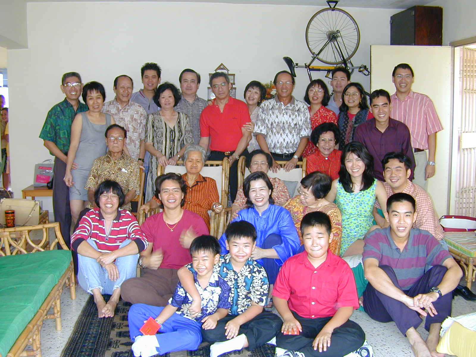 We started with the usual chit chat....begging for orange juice, etc. Followed by the traditional "Miss CNY 00" pose-offs... Who do you think won this year....? Then of course the makan, makan, and more makan...!! Whew....after everyone was stuffed, made everyone work again to pose for the grand finale !! (Warning....this picture is BIG so be prepared to wait if you click on it ! - but at least everybody's face can be seen clearly !). |