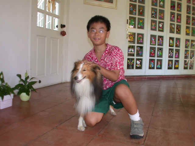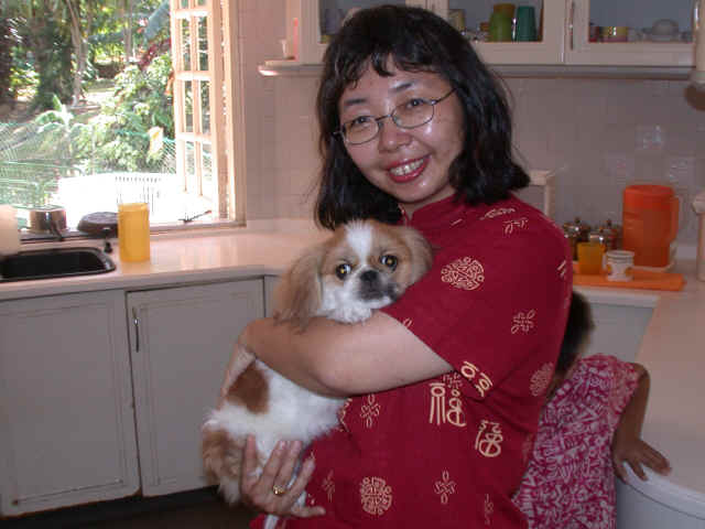 Went to visit Kum Oh in the afternoon. She had had an unfortunate accident and had hurt her ankle - sprained it while she was working in the garden. She had to be piggy-backed downstairs by her maid in order for us to "Pai Neen" ! First time for us to visit her (last year she wasn't home), and we and the kids were delighted that she (or rather Pingsky) has 8 dogs !! So lovely !